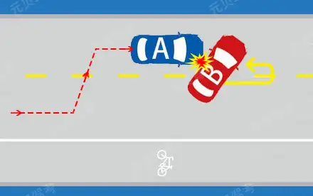 如图所示,造成事故的原因是B车掉头行驶,B车负全部责任。